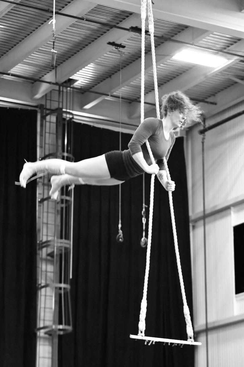Caitlin (she/they) is a dance trapeze artist with a strong background in athletics and a deep passion for human movement.